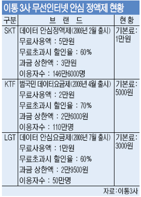 22ÀÏ ¾÷°è¿¡ µû¸£¸é SKÅÚ·¹ÄÞ, KTF, LGÅÚ·¹ÄÞ µî ÀÌÅë3»çÀÇ ¡®¾È½É Á¤¾×Á¦¡¯ ÀÌ¿ë°í°´Àº ÃÑ 306¸¸6000¿©¸íÀ¸·Î ¹«¼±ÀÎÅͳÝÀ» Áñ°Ü ¾²´Â ÀþÀº °í°´Ãþ¿¡¼ °¡ÀÔÀÌ ±ÞÁõÇϰí ÀÖ´Ù.