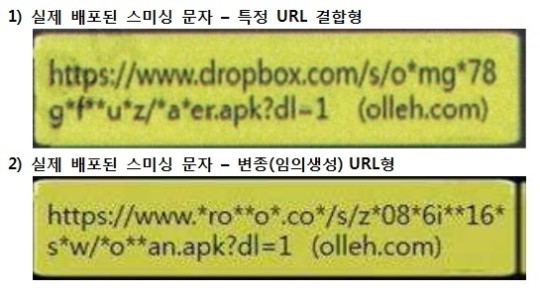 KT¿¡ µû¸£¸é ÀÌ ½º¹Ì½Ì ¹®ÀÚ¿¡´Â º°´Ù¸¥ ³»¿ë ¾øÀÌ ¸µÅ©°¡ °É¸° ÀÎÅͳÝÁÖ¼Ò¿Í ÇÔ²² ¡®olleh.com¡¯¹®±¸°¡ Æ÷ÇԵŠÀÖ´Ù. ¸¶Ä¡ KT °í°´À» ´ë»óÀ¸·Î KT°¡ º¸³½ °Íó·³ ¿ÀÀÎÇÒ ¼ö ÀÖ´Â ºÎºÐÀÌ´Ù. ÀÌ ½º¹Ì½Ì ¹®ÀÚÀÇ ¸µÅ©¸¦ ¿¬°áÇÏ¸é ¾Ç¼ºÄڵ尡 »ç¿ëÀÚ ½º¸¶Æ®ÆùÀÇ ¹é½Å ±â´ÉÀ» ¹«·ÂÈ­Çϸç, ¼³Ä¡µÈ ÀºÇà ¾ÖÇø®ÄÉÀ̼ÇÀ» »èÁ¦ÇÑ µÚ ÇÇ½Ì¿ë °¡Â¥ ÀºÇà ¾ÛÀ» ¸ô·¡ ¼³Ä¡ÇÑ´Ù.
