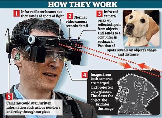 ½º¸¶Æ® ±Û·¡½ºÀÇ ÀÛµ¿¿ø¸®´Â ÀÌ·¸´Ù. ºñµð¿ÀÄ«¸Þ¶ó°¡ Àü¹æ¿¡¼­ È®º¸ÇÑ ½Ã¾ß¸¦ ³»Àå ÄÄÇ»ÅͰ¡ ÀνÄÇØ À̸¦ Á¢¾È·»ÁîÀÇ Åõ¸í ÀüÀÚ µð½ºÇ÷¹ÀÌ·Î Àü¼Û½ÃÄÑ Àα٠Áö¿ª »ç¶÷°ú »ç¹°¿¡ ´ëÇÑ 3Â÷¿ø À̹ÌÁö¸¦ º¸¿©ÁÖ´Â °ÍÀÌ´Ù. ¿¹¸¦ µé¾î, °©Àڱ⠱æÀÌ ²ª¾îÁö°Å³ª Å×À̺í, ÀÇÀÚ µî ¿¹»óÄ¡ ¸øÇß´ø º¸Çà Àå¾Ö¹°À» ÁöÆÎÀ̳ª ÁÖº¯ »ç¶÷ µµ¿ò ¾øÀÌ ÈξÀ Á¤È®È÷ ÆÄ¾ÇÇÒ ¼ö ÀÖÀ¸¸ç ¾îµÎ¿î ¹ã±æ¿¡ ¾àÇÑ ¾ß¸ÍÁõ ȯÀÚ¿Í °°Àº ºÎºÐÀûÀ¸·Î ½Ã·ÂÀÌ ¼Õ½ÇµÈ Àα¸¿¡°Ôµµ Æø³ÐÀº Ȱ¿ëÀÌ °¡´ÉÇÏ´Ù´Â ÀåÁ¡ÀÌ ÀÖ´Ù.