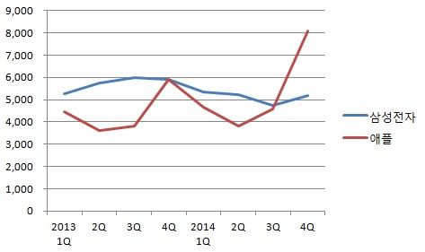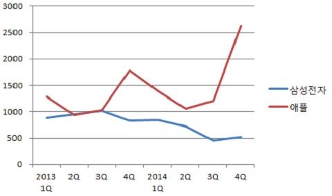 ¡ã »ï¼ºÀüÀÚ¿Í ¾ÖÇÃÀÇ ÃÖ±Ù ¸ÅÃâ ÃßÀÌ. Áö³­ÇØ 4ºÐ±â »ï¼ºÀüÀÚ°¡ ¾ÖÇÿ¡ ¿ªÀüÀ» Çã¿ëÇß´Ù.¡´ÀÚ·á=°¢»ç Á¾ÇÕ¡µ
