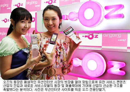 ¿ÀÁîÀÇ µîÀåÀº ¸ð¹ÙÀÏ »ê¾÷ ÀüÈĹ濡µµ ÀûÀÝÀº ¿µÇâÀ» ¹ÌÄ¡°í ÀÖ´Ù. ÀÌ¹Ì À¯¼±À¥ ¼ºñ½º ½ÃÀåÀÇ °ÀÚÀÎ NHN, ´ÙÀ½, KTH, G¸¶ÄÏ µîÀÌ ¸ð¹ÙÀÏ È¯°æ¿¡ ¸Â´Â À¥»çÀÌÆ®¸¦ ¾Õ´ÙÅý ±¸ÃàÇϰí ÀÖ´Ù. À̵éÀº ÀÌ¹Ì PDAÆùÀÌ µîÀåÇÑ ¼ö³â ÀüºÎÅÍ ¸ð¹ÙÀÏ ÀÎÅͳݽÃÀåÀ» ÁÖ¸ñÇØ¿ÔÁö¸¸ º»°ÝÀûÀÎ ½ÃÀåÁøÀÔÀ» °áÁ¤ÇÏ°Ô µÈ °ÍÀº ¿ÀÁîÀÇ µîÀåÀÌÈÄ´Ù.