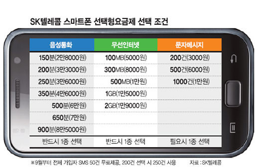 3ÀÏ °ü·Ã¾÷°è¿¡ µû¸£¸é Á¤ºÎÀÇ ¿ä±Ý ÀÎÇÏ Á¤Ã¥À¸·Î SKÅÚ·¹ÄÞÀÌ ´ÙÀ½´ÞºÎÅÍ µµÀÔÇϱâ·Î ÇÑ ½º¸¶Æ®Æù ¼±ÅÃÇü ¿ä±ÝÁ¦¸¦ °õ°õÀÌ µûÁ®º¸´Ï ÀÌ¹Ì ÀÖ´Â À½¼ºÅëÈ­, ¹«¼±ÀÎÅͳÝ, ¹®ÀÚ¸Þ½ÃÁö(SMS) ÅëÇÕ¿ä±ÝÁ¦º¸´Ù ÇýÅÃÀÌ ¶³¾îÁö´Â °ÍÀ¸·Î ³ªÅ¸³µ´Ù.