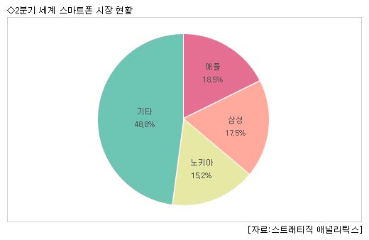 ¹Ì±¹ÀÇ ½ÃÀå Á¶»ç Àü¹®¾÷ü ½ºÆ®·¡Æ¼Áö ¾Ö³Î¸®Æ½½º ÀÚ·á¿¡ µû¸£¸é 2ºÐ±â ¼¼°è ½º¸¶Æ®Æù ½ÃÀå¿¡¼­ ¾ÖÇÃÀÌ 18.5% Á¡À¯À²·Î 1À§¸¦ °í¼öÇß´Ù. Áö³­ ºÐ±â¿¡ ¾ÆÀÌÆù ÃâÇÏ·®ÀÌ 2õ30¸¸´ë¿¡ À̸£·¶´ø ¾ÖÇÃÀº »ç»ó óÀ½À¸·Î ½º¸¶Æ®Æù ÃÖ°­ÀÚ·Î ÀÚ¸®¸¦ Àâ¾Ò´Ù. »ï¼ºÀº 2õ20¸¸´ë·Î ¾ÖÇÿ¡ 1%P °¡·® µÚÁø 2À§¿¡ ·©Å©µÆ´Ù.
