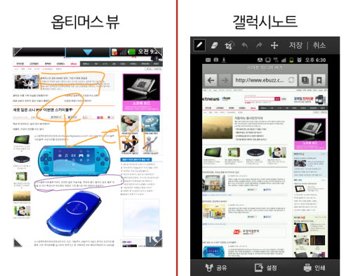 ¡Þ ¼¼¹ÐÇÔ¿¡¼± °¶·°½Ã³ëÆ®=µÎ Á¦Ç°Àº °°Àº ¸Þ¸ð ±â´ÉÀ» Ç¥¹æÇϰí ÀÖÁö¸¸ ½ÇÁ¦ »ç¿ë¹æ½Ä¿¡´Â Â÷À̰¡ ÀÖ´Ù. È­¸éÀ» Ä¸Ã³ÇØ ¸Þ¸ðÇÏ°í ´Ù¸¥ »ç¶÷°ú °øÀ¯ÇÏ·Á¸é ¿ÉƼ¸Ó½ººä´Â Äü ¸Þ¸ð ¹öưÀ» ´©¸£¸é µÈ´Ù. ¹Ý¸é °¶·°½Ã³ëÆ®´Â SÆæ ¹öưÀ» ´©¸¥ »óÅ¿¡¼­ È­¸éÀ» Ŭ¸¯ÇØ¾ß ÇÑ´Ù. º»Ã¼¿¡ ÀåÂøµÇ¾î ÀÖ´Â SÆæÀ» »©°í ¼Õ¿¡ Áã±â±îÁöÀÇ ½Ã°£À» °í·ÁÇÏ¸é ¼Õ°¡¶ôÀ» Ȱ¿ëÇÒ ¼ö ÀÖ´Â ¿ÉƼ¸Ó½ººä°¡ ´õ ºü¸£´Ù.