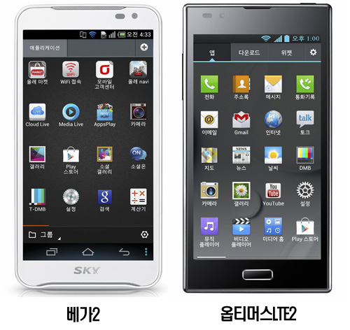 µÎ Á¦Ç°ÀÇ °¡Àå Å« Â÷ÀÌ´Â »ç¿ëÀÚ È¯°æ(UI)ÀÌ´Ù. ¿ÉƼ¸Ó½ºLTE´Â 5ÀÎÄ¡ ´ëÈ­¸éÀÇ£§¿ÉƼ¸Ó½ººä£§ÀÇ ÀåÁ¡ÀΣ§Easy UI£§¸¦ °ÅÀÇ ±×´ë·Î ¿Å°Ü¿Ô´Ù. Äü ¸Þ¸ð ±â´ÉÀÌ ´ëÇ¥ÀûÀÌ´Ù. º£°¡·¹À̼­2´Â ±âÁ¸ UI¿Ü¿¡µµ »õ·Ó°Ô À©µµÆù°ú ºñ½ÁÇÑ Å¸ÀÏ Çü½ÄÀÇ °£Æí ¸ðµå¸¦ µµÀÔÇß´Ù.