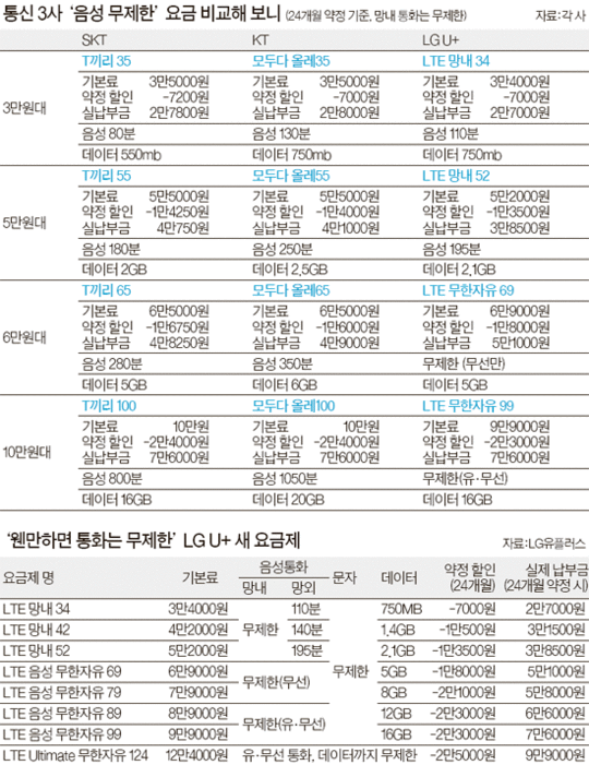¿ù 6¸¸9000¿ø ÀÌ»ó ¿ä±ÝÁ¦¸é SKT¡¤KT °¡ÀÔÀÚ¿Í ¹«Á¦ÇÑ ÅëÈ