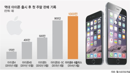 22ÀÏ(ÇöÁö½Ã°£) ¾ÖÇÃÀº ½ÅÁ¦Ç° ¾ÆÀÌÆù6¿Í 6Ç÷¯½º°¡ Ãâ½ÃµÈ µÚ ù ÁÖ¸» µ¿¾È ±Û·Î¹ú ÆÇ¸Å·®ÀÌ 1000¸¸´ë¸¦ ³Ñ°å´Ù°í ¹àÇû´Ù. Áö³ÇØ ¾ÆÀÌÆù5S¿Í 5C¸¦ Ãâ½ÃÇßÀ» ´ç½ÃÀÇ ÆÇ¸Å ±â·Ï(900¸¸´ë)À» °¥¾ÆÄ¡¿ü´Ù. ¾ÖÇà Á¦Ç°ÀÌ ÆÇ¸Å ½ÃÀÛ ÈÄ Ã¹ »çÈê°£ 1000¸¸´ë¸¦ µ¹ÆÄÇÑ °ÍÀº À̹øÀÌ Ã³À½ÀÌ´Ù. ¾ÖÇÃÀº 2007³â ¾ÆÀÌÆù ù Ãâ½ÃºÎÅÍ 8³â ¿¬¼Ó ½ÅÁ¦Ç° ½ÃÆÇ ù ÁÖ¸» ÆÇ¸Å ±â·ÏÀ» °æ½ÅÇß´Ù. ¾ÆÀÌÆù6¿Í 6Ç÷¯½º´Â Áö³ 19ÀÏ ¹Ì±¹À» ºñ·ÔÇÑ ÀϺ», µ¶ÀÏ, È«Äá, ¿µ±¹, ÇÁ¶û½º, Ǫ¿¡¸£Å丮ÄÚ, ½Ì°¡Æ÷¸£, È£ÁÖ, ij³ª´Ù µî 10°³±¹¿¡¼ Ãâ½ÃµÆ´Ù.