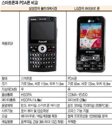 ÃÖ±Ù Ãâ½ÃµÈ »ï¼ºÀüÀÚÀÇ ½º¸¶Æ®Æù `¿ïÆ®¶ó¸Þ½Ã¡£§(¹Ì±¹¸í ºí·¢Àè)°ú´Â Åë½Å¹æ½ÄÀ̳ª ±â´É¿¡¼ ´Ù¼Ò Â÷À̰¡ ÀÖ´Ù. ÀÏ´Ü PDAÆùÀº ¸»±×´ë·Î `PDA+ÈÞ´ëÆù¸ðµâ£§ÀÎ ¹Ý¸é ½º¸¶Æ®ÆùÀº ÈÞ´ëÆù¿¡ PDAÀÇ ÀϺαâ´ÉÀ» ´õÇÑ °ÍÀÌ´Ù. ¿ïÆ®¶ó¸Þ½Ã¡Àº µÎ²²°¡ 11.8§®·Î ±âÁ¸ ÈÞ´ëÆù°ú ºñ½ÁÇÏ´Ù. ¶Ç OSµµ ½º¸¶Æ®Æù¿ëÀÎ À©µµ¸ð¹ÙÀÏ ½º¸¶Æ®Æù¿¡µð¼ÇÀ» žÀçÇßÁö¸¸ LGÀüÀÚÀÇ ¿ÍÀÌÇÁ·ÎÆùÀº À©µµ ¸ð¹ÙÀÏÇÁ¸®¹Ì¾ö(Æ÷ÄÏPC¿ëOS)À» äÅÃÇß´Ù. »ç¿ë °¡´ÉÇÑ ÀÀ¿ë¼ÒÇÁÆ®¿þ¾îÀÇ Æø¿¡¼´Â »ó´çÇÑ Â÷À̰¡ ÀÖ´Ù. ½º¸¶Æ®Æù¿¡¼´Â ºä¾î·Î ¿ÀÇǽºÆÄÀÏÀ» º¸°Å³ª °£´ÜÇÑ ¹®¼ÀÛ¼º, ÀÏÁ¤°ü¸® µîÀ¸·Î ±â´ÉÀÌ Á¦ÇѵȴÙ. ¹Ý¸é PDAÆùÀº ¿ÀÇǽºÆÄÀÏ ÀÛ¼ºÀº ¹°·Ð ´Ù¾çÇÑ »ó¿ë ¼ÒÇÁÆ®¿þ¾î¸¦ ÀÌ¿ëÇÒ ¼öÀÖ´Ù.