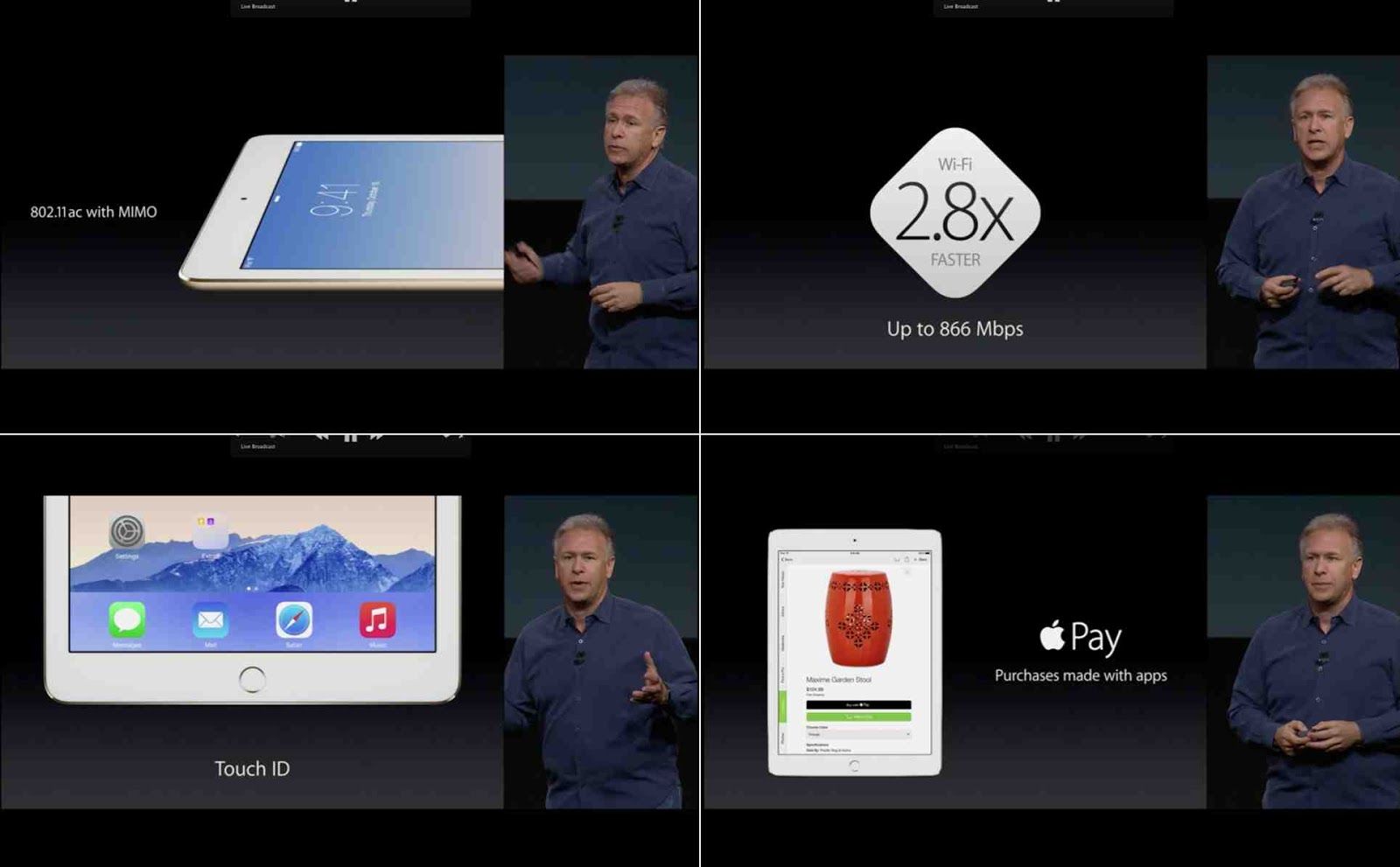 ¾ÖÇÃÀÌ °£¹ã¿¡ ÄíÆÛƼ³ë º»»ç¿¡¼­ À̺¥Æ®¸¦ ¿­°í ¾ÆÀÌÆÐµå ½ÅÁ¦Ç°°ú ¸Æ ½ÅÁ¦Ç°, ±×¸®°í ¿ä¼¼¹ÌƼ¸¦ ¹ßÇ¥Çß½À´Ï´Ù. ÃÖ°í°æ¿µÀÚ(CEO)ÀÎ ÆÀ ÄîÀÌ ¸ÕÀú ¹«´ë¿¡ ¿Ã¶ó ¾ÖÇÃÆäÀÌ¿Í ¾ÖÇÿöÄ¡¿¡ °üÇØ Ãֽе¿ÇâÀ» ¾ê±âÇß°í, À̾î Å©·¹ÀÌ±× Æä´õ¸®±â ºÎ»çÀå(SVP)ÀÌ ¾ÆÀÌÆù/ÆÐµå¿ë iOS 8.1°ú ¸Æ OSÀÎ ¿ä¼¼¹ÌƼ¿¡ °üÇØ ¼³¸íÇß½À´Ï´Ù.