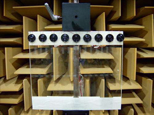 ¸ð´ÏÅÍ¿¡ ÀÏ·Ä·Î ¹èÄ¡µÈ ½ºÇÇÄ¿ 9°³¿¡¼ ³ª¿À´Â À½ÆÄµéÀ» Á¦¾îÇØ ¸ð´ÏÅÍ Á¤¸é ¹æÇâÀÇ Áö¸§ 30§¯ Å©±â ¿ø ¿µ¿ª(ûÃ뿵¿ª)¿¡¼´Â ¼Ò¸®°¡ Ä¿Áö´Â º¸°°£¼·ÀÌ ÀϾ°Ô ÇÏ°í ´Ù¸¥ °ø°£¿¡¼´Â ¼Ò¸®°¡ ¾àÇØÁö°Å³ª ¾ø¾îÁö´Â »ó¼â°£¼·ÀÌ ÀϾµµ·Ï ÇÑ °ÍÀÌ´Ù.