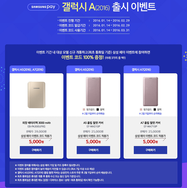 °¶·°½ÃA5(2016), °¶·°½ÃA7(2016) Ãâ½Ã ±â³ä, »ï¼ºÆäÀÌ À̺¥Æ® |