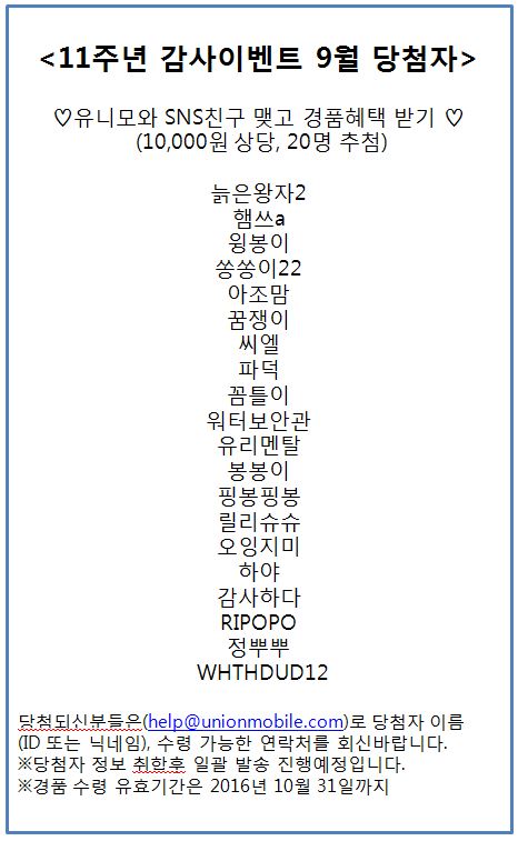 [À̺¥Æ®] À¯´Ï¸ð¿Í ÇÔ²²ÇÏ´Â 11Áֳ⠰¨»çÀ̺¥Æ® 9¿ù ´ç÷ÀÚ °øÁö