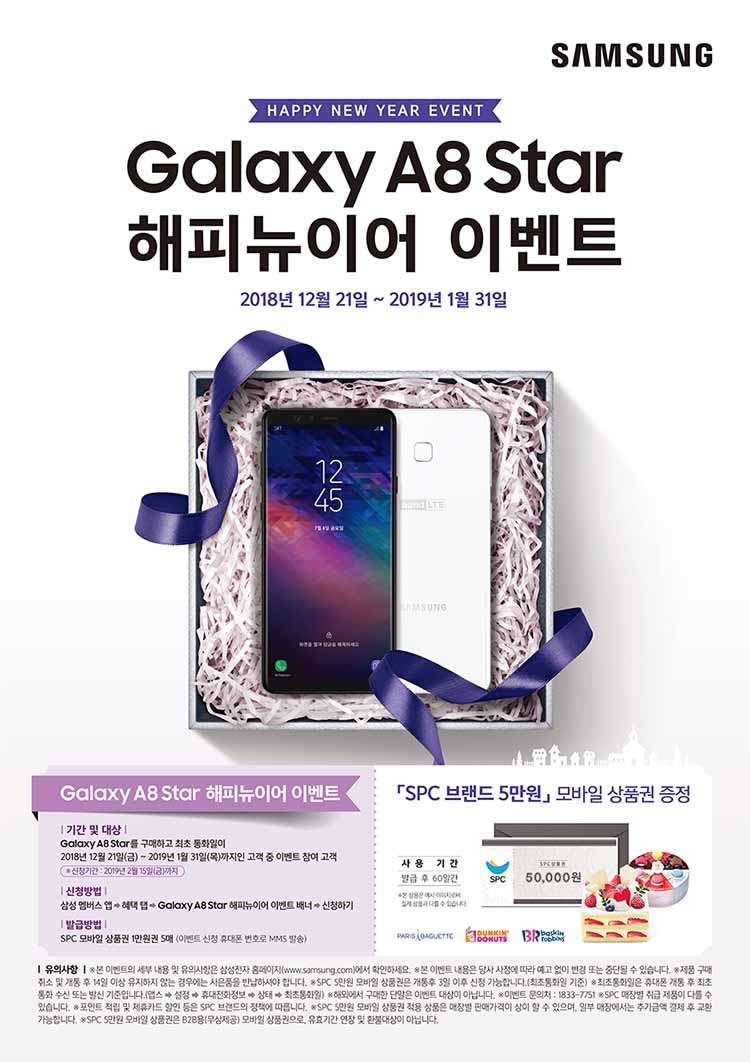 - ½Åû¹æ¹ý : »ï¼º ¸â¹ö½º ¾Û > ÇýÅà ÅÇ > Galaxy A8 Star ÇØÇÇ´ºÀ̾î À̺¥Æ® ¹è³Ê > ½ÅûÇϱâ (2¿ù 15ÀϱîÁö) - ¹ß±Þ¹æ½Ä : SPC ¸ð¹ÙÀÏ »óǰ±Ç 1¸¸¿ø±Ç 5¸Å (À̺¥Æ® ½Åû ÈÞ´ëÆù ¹øÈ£·Î MMS ¹ß¼Û) *SPC °è¿ (ÆÄ¸®¹Ù°Ô¶ß, ´øÅ²µµ³ÊÃ÷, º£½ºÅ²¶óºó½º µî »ç¿ë °¡´É)