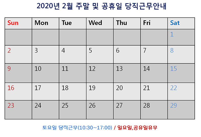 [2020³â 2¿ù ÁÖ¸» ¹× °øÈÞÀÏ ´çÁ÷±Ù¹« ¾È³»]