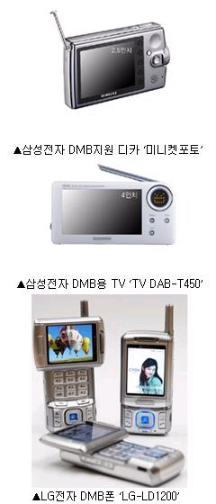 Áö»óÆÄDMB(Digital Multimedia Broadcasting-µðÁöÅÐ ¸ÖƼ¹Ìµð¾î ¹æ¼Û)½ÃÀå ¼±Á¡À» À§ÇÑ Á¦Á¶»çµéÀÇ ¿òÁ÷ÀÓÀÌ ¹ÙºüÁ³´Ù. À§¼ºDMB¿Í ´Þ¸® ¼­ºñ½ººñ¿ëÀÌ ¾ø´Â Áö»óÆÄDMB ½ÃÀåÀÇ ¼ö¿ä°¡ ´õ Å©°Ô Áõ°¡ÇÒ °ÍÀÌ ºÒÀ» º¸µí »·ÇÑ ½ÃÁ¡¿¡ Á¦Á¶»çµéÀÌ ¾Õ´ÙÅõ¾î Áö»óÆÄDMB ´Ü¸»±â¸¦ ¼±º¸À̰í ÀÖ´Ù. ÀüÀںκР1,2À§¸¦ ´ÙÅõ´Â »ï¼ºÀüÀÚ¿Í LGÀüÀÚ°¡ ¿©ÀüÈ÷ »õ·Î¿î ½ÃÀå¿¡¼­µµ ´ÙÅùÀÌ Ä¡¿­ÇÏ´Ù.