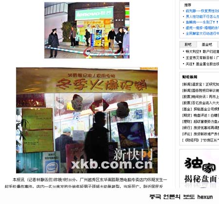 3ÀÏ ´õ ŸÀÓ½º µîÀÇ ¿Ü½ÅÀÌ Áß±¹ ¾ð·ÐÀ» ÀοëÇØ º¸µµÇÑ ¹Ù¿¡ µû¸£¸é, Áö³ ´Þ 30ÀÏ Áß±¹ ±¤Àú¿ì¿¡ À§Ä¡ÇÑ ÇÑ ÄÄÇ»ÅÍ °¡°Ô¿¡¼ ÈÞ´ëÆù Æø¹ß »ç°í°¡ ÀϾ, °¡°Ô¿¡¼ ÀÏÇÏ´ø 20»ì ³²¼ºÀÌ ¼ûÁ³´Ù´Â °Í.