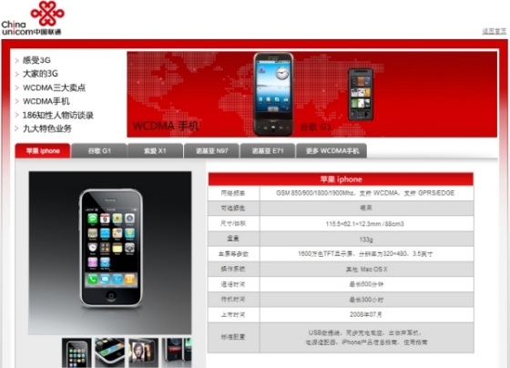 Áß±¹ÀÇ À̵¿Åë½Å»çÀÎ Â÷À̳ª À¯´ÏÄÞ À¥»çÀÌÆ®¿¡ 3G ¾ÆÀÌÆù°ú ±¸±Û ¾Èµå·ÎÀ̵å Ç÷§Æû ±â¹ÝÀÇ G1 À̹ÌÁö¿Í ½ºÆåÀÌ °ø°³µÆ´Ù.