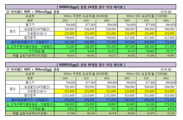 | ¾ÆÀÌÆÐµåWiFi + Wibro(Egg) ¿ä±ÝÁ¦º° ÇҺΠ¾È³»ÀÔ´Ï´Ù |