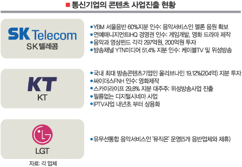 Åë½Å¾÷°è¿¡ ÄÜÅÙÃ÷»ç¾÷ ÁøÃâ ¹Ù¶÷ÀÌ ºÒ°í ÀÖ´Ù. À¯¹«¼±Åë½Å¾÷ü °¡¸± °Í ¾øÀÌ ¿µÈ¿Í À½¾Ç, µå¶ó¸¶, °ÔÀÓ µî ÄÜÅÙÃ÷»ç¾÷¿¡ ¾Õ´ÙÅý ÁøÃâÇϰí ÀÖ´Ù. ´ëÇ¥ÀûÀÎ ¹æ¼Û°ú Åë½ÅÀÇ À¶ÇÕ ¼ºñ½ºÀÎ ÀÎÅͳÝ(IP)TV»ç¾÷ÀÌ ±Þ·ù¸¦ Ÿ¸é¼ ÄÜÅÙÃ÷ È®º¸°¡ Åë½Å¾÷°è ÆÇµµÀÇ ÃÖ´ë º¯¼ö·Î ¶°¿Ã¶ú±â ¶§¹®ÀÌ´Ù. ¡ß±Þ·ùŸ´Â IPTV= KT´Â 29ÀÏ Áö»óÆÄ¹æ¼Û°ú Åë½Å»ç¾÷ÀÚ 50¿©°³ ¾÷ü°¡ Âü¿©ÇÑ ÄÁ¼Ò½Ã¾öÀ» ±¸¼ºÇØ ¹æ¼ÛÀ§¿øÈ¸¿Í Á¤º¸Åë½ÅºÎ¿¡ IPTV½Ã¹ü»ç¾÷ÀÚ ½Åû¼¸¦ Á¦ÃâÇß´Ù.