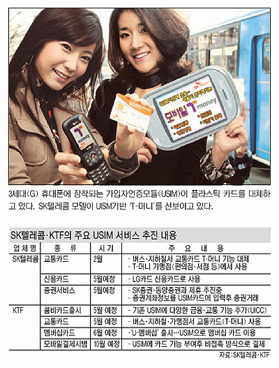 ƯÈ÷ KTF´Â Àڻ簡 ÃÖ±Ù À¯·´ÇüÀ̵¿ÀüÈ­(GSM)Çùȸ¿¡ Á¦¾ÈÇØ ÃßÁø ÇÁ·ÎÁ§Æ®·Î ¼±Á¤µÈ ¡®¸ð¹ÙÀÏ °áÁ¦¡¯¿¡ Å« ±â´ë¸¦ °É°í ÀÖ´Ù. KTF°¡ Á¦¾ÈÇÑ ±â¼úÀº USIM¿¡ ½Å¿ëÄ«µå¡¤Á÷ºÒÄ«µå ±â´ÉÀ» ºÎ¿©ÇÏ°í ±Ù°Å¸® ¹«¼±Åë½Å ±â¼úÀ» ÀÌ¿ëÇØ ºñÁ¢ÃËÀ¸·Î °áÁ¦ÇÏ´Â ¹æ½ÄÀÌ´Ù.