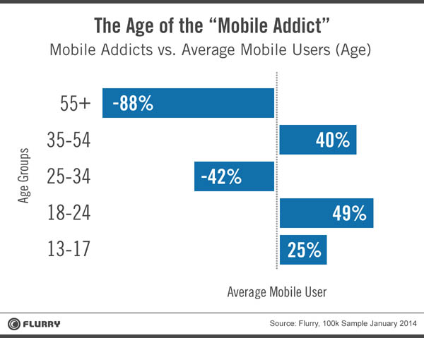 ¹Ì±¹ ¸ð¹ÙÀÏ ºÐ¼® ¾÷ü ¡®Ç÷¯¸®(Flurry)¡¯°¡ 22ÀÏ ¸ð¹ÙÀÏ Áßµ¶ º¸°í¼¸¦ ³»³ù½À´Ï´Ù. Á¦¸ñÀº ¡®¸ð¹ÙÀÏ Áßµ¶ÀÇ µîÀå (The Rise of the Mobile Addict)¡¯. »ç¶÷µéÀº ÇÏ·ç 10¹øÂë ¸ð¹ÙÀÏ ¾Û(ÀÀ¿ë ÇÁ·Î±×·¥)À» ½ÇÇàÇÑ´Ù°í ÇÕ´Ï´Ù. Ç÷¯¸®´Â ÇÏ·ç 60¹ø ÀÌ»ó, ±×·¯´Ï±î Æò±ÕÀÇ 6¹è ÀÌ»ó ¾ÛÀ» ½ÇÇàÇÏ´Â °ÍÀ» ¡®¸ð¹ÙÀÏ Áßµ¶£§À̶ó°í Á¤ÀÇÇß½À´Ï´Ù. º¸°í¼ ³»¿ë. À̹ø Á¶»ç´Â 3¿ù Áß ¸ð¹ÙÀÏ ±â±â 13¾ï´ë¿¡¼ 50¸¸°³ ¾ÛÀ» ´ë»óÀ¸·Î ÁøÇàÇß´Ù. ÀÛ³â 3¿ù Á¶»ç °á°ú¿Í ºñ±³ÇÏ¸é ¸ð¹ÙÀÏ Áßµ¶ÀÌ 123% ±ÞÁõÇß´Ù. ¸ð¹ÙÀÏ Áßµ¶ÀÚ°¡ 7900¸¸¸í¿¡¼ 1¾ï7600¸¸¸íÀ¸·Î ´Ã¾ú´Ù. Á÷Àü ´Ü°èÀÎ °ú´Ù»ç¿ëÀÚ(ÇÏ·ç 16~60ȸ)´Â 55% Áõ°¡Çß°í, º¸Åë»ç¿ëÀÚ(ÇÏ·ç 10ȸ ¹Ì¸¸)´Â 23% Áõ°¡Çß´Ù.