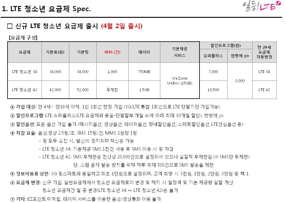 LGU+ LTE û¼Ò³â 34/42 ¿ä±ÝÁ¦ Ãâ½Ã - 2012.04.02 |