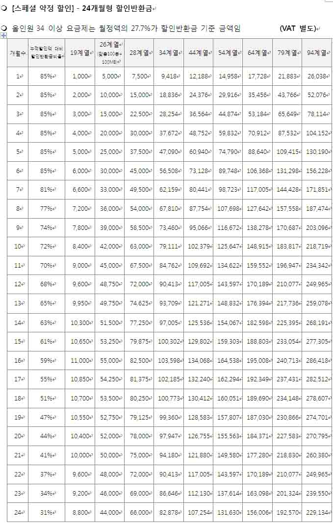 [SKT ½ºÆä¼È ¾àÁ¤ÇÒÀÎÁ¦µµ] ÇÒÀιÝȯ±Ý Å×À̺í(¿¹½Ã) - 2012.11.01 |