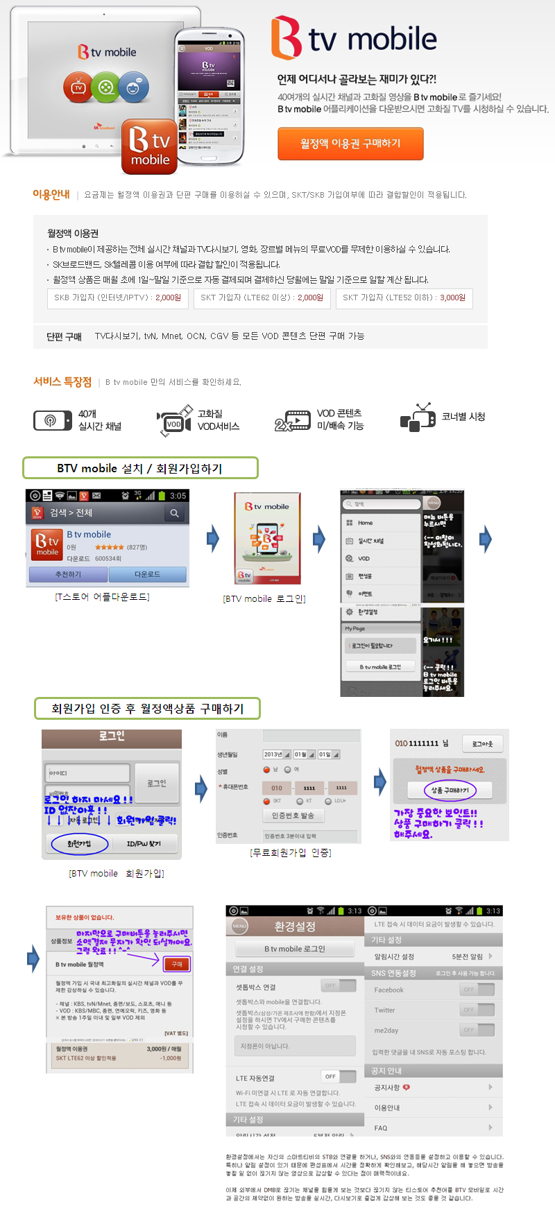 SKT Btv¸ð¹ÙÀÏ(Btv Mobile) ¼ºñ½º °¡ÀÔ ¹× FAQ ¾È³» |